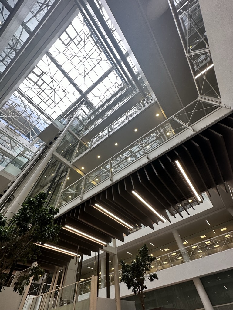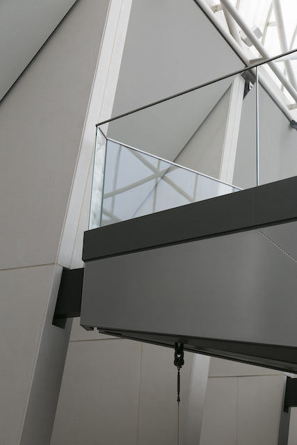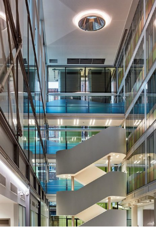 Staircase balustrades, Atrium Glass screens and anodised, aluminium cladding to corridors
