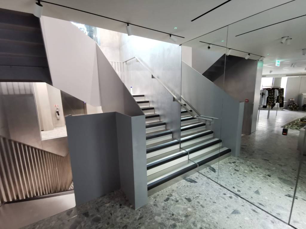 A Hong Kong developer engaged us to produce an elaborate and very elegant, stainless steel staircase with part mild steel painted plate, panels, stainless steel treads, and stainless steel handrails. It was complex geometrically, but is now the major feature of a retail development in the West End.